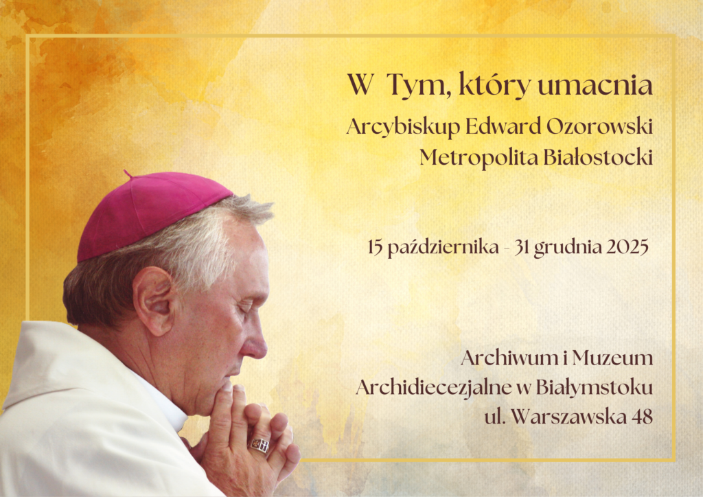 W środę 15 października 2025 r. odbył się wieczór wspomnień poświęcony śp. abp. Edwardowi Ozorowskiemu metropolicie białostockiemu, połączony z wernisażem wystawy „W Tym, który umacnia. Arcybiskup Edward Ozorowski Metropolita Białostocki”. Spotkanie zorganizowały Archidiecezjalne Wyższe Seminarium Duchowne w Białymstoku (AWSD) oraz Archiwum i Muzeum Archidiecezjalne w Białymstoku (AMAB). Wydarzenie, przygotowane w związku z pierwszą rocznicą śmierci arcybiskupa przypadającą 12 października br., zgromadziło licznych gości, w tym członków rodziny zmarłego, jego uczniów, przyjaciół i współpracowników.